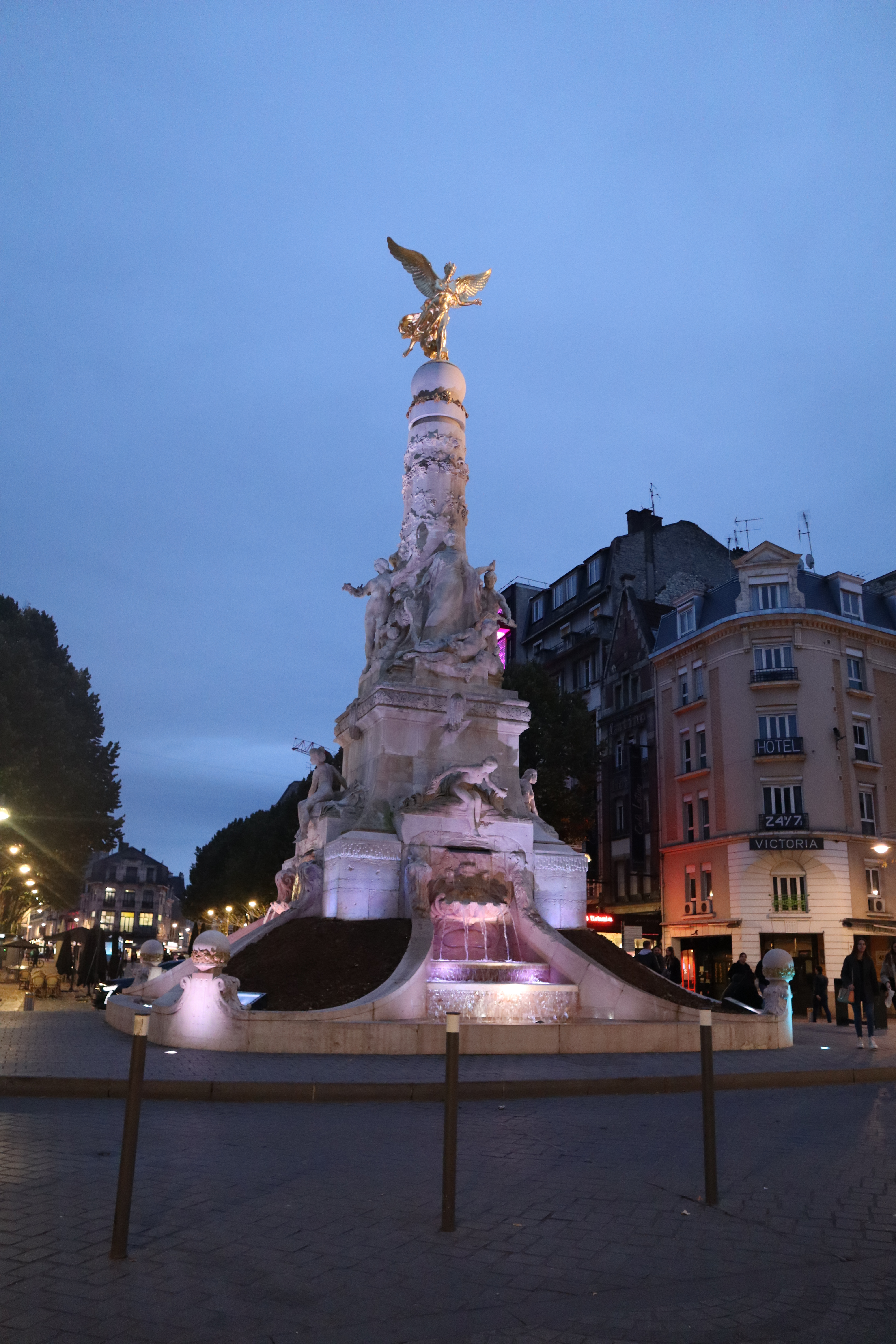 We passed the museum of the surrender on our way. The museum looked kind of nice with all the flags on the outside and it commemorates the surrender. The leaders of the world actually signed the unconditional surrender here in April 1945. This meant the end of World War II, at least for Europe. Unfortunately, not all the powers within the axis union surrendered in April. The war continued in the Pacific. As most of you probably know, Japan did not surrender before August, after the bombing of Hiroshima and Nagasaki. I did not know that the surrender had been signed in Reims to be honest. If I had, we would probably have visited the museum, but yeah I didn’t and we might return someday. You always have to leave some things uncovered to justify future stops. Next up on our little city tour was the Porte de Mars. This triumphal arch dates back to Roman times and according to local info signs it was the widest arch in the Roman world. But I did not cross-reference that bit of info so no guarantees! Today it sits on a central plaza and there are some statues in front of it. The statues look kind of interesting as you can see further down.